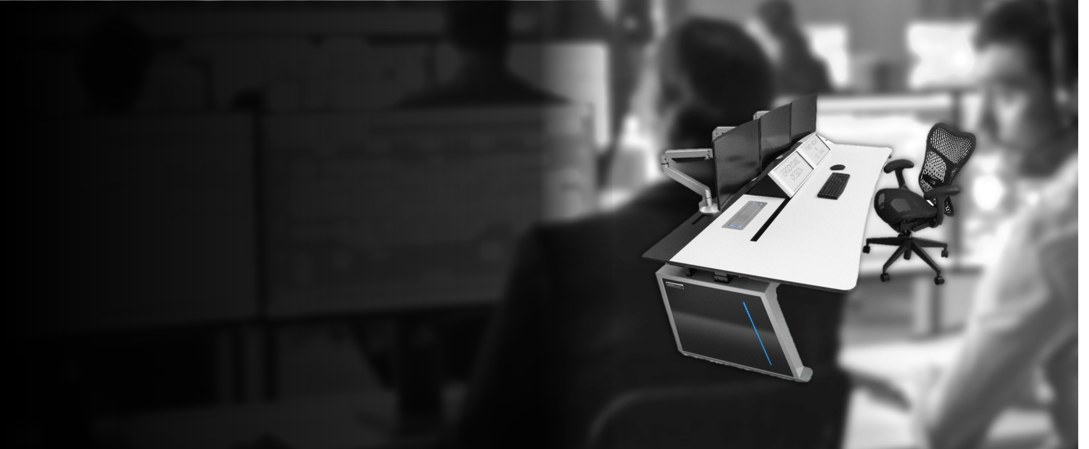 Las soluciones AV de Legrand lo hacen posible con consolas ergonómicas, soportes para videowalls y sistemas de visualización que mantienen cada dato siempre a la vista.