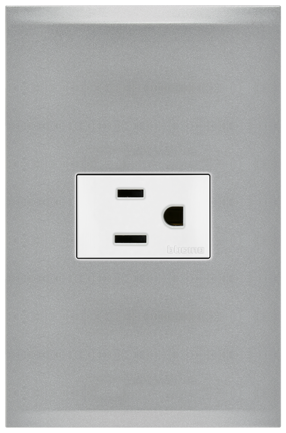 Placa tech con 1 tomacorriente 2P+T 15A 127V, blanco brillante.