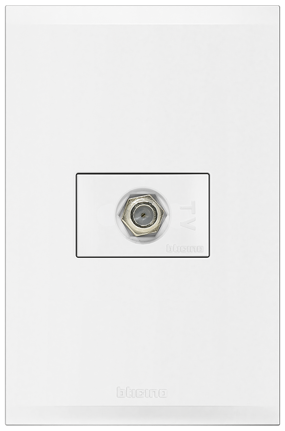 Placa blanca con toma de TV tipo F, blanco brillante.
