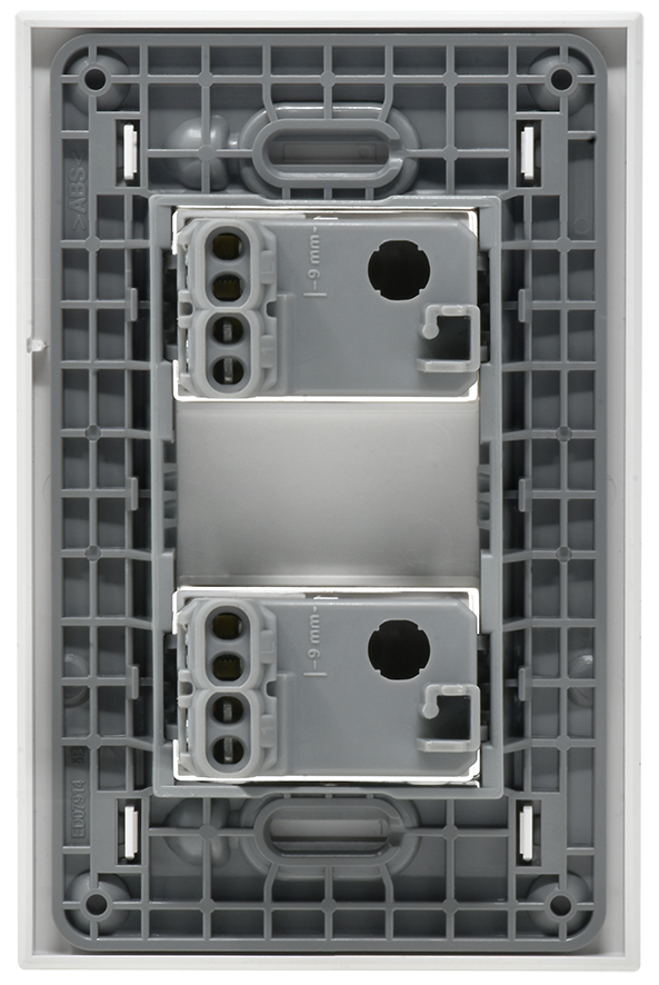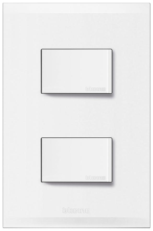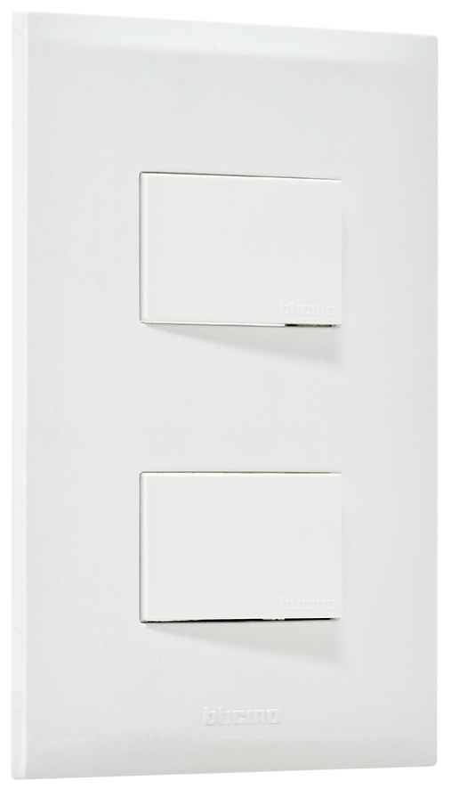 Placa blanca con 2 interruptores sencillos 15A 127V, blanco brillante.